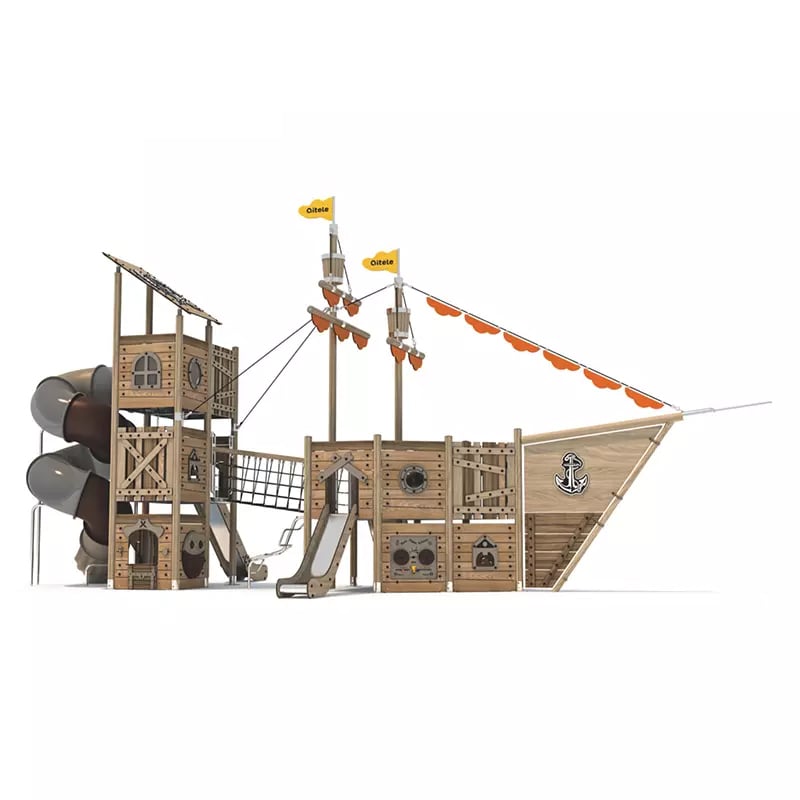 Adventure-Themed Playground: The pirate ship design captivates young minds, offering an adventurous play experience.